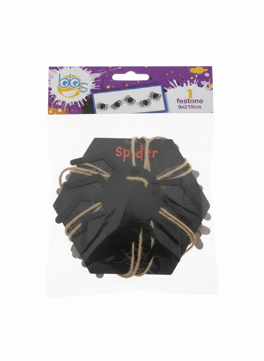 Aggiungi un tocco spaventosamente divertente alla tua festa di Halloween con questo festone a forma di ragno! Realizzato in cartoncino nero resistente, questo festoon misura 9×210 cm e presenta sagome stilizzate di ragni intrecciate con un cordoncino rustico, perfetto per decorare pareti, porte o tavoli. Ideale per party a tema horror, compleanni o eventi autunnali, è facile da appendere e riutilizzabile. Marchio Boo’s, qualità garantita per un’atmosfera da brivido!