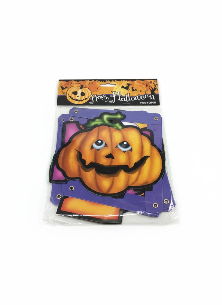 Porta l’allegria di Halloween nella tua casa con questo festone “Happy Halloween” originale e colorato! Confezione completa per creare un banner decorativo a tema zucca, composto da pezzi in cartoncino resistente arancione e viola, con un simpatico jack-o’-lantern sorridente e lettere pronte da assemblare. Ideale per feste, party a tema, decorazioni per finestre o porte – facile da appendere grazie ai fori preforati. Perfetto per bambini e famiglie, aggiunge un tocco spettrale ma divertente alla tua celebrazione. Non aspettare, ordina ora e illumina la tua notte di dolcetti o scherzetti! 🎃👻