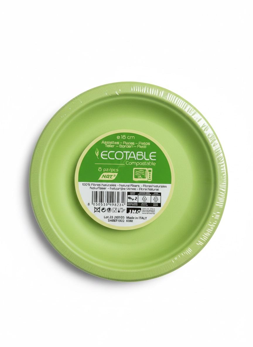 I Piatti Ecotable compostabili in fibra naturale 100% rappresentano una scelta sostenibile senza rinunciare alla qualità. Realizzati interamente con materiali biodegradabili, sono compostabili e perfetti per ridurre l’impatto ambientale. La confezione contiene 8 piatti color kiwi dal diametro di 18 cm, ideali per snack, dolci, antipasti e piccole porzioni. Robusti e resistenti, mantengono stabilità anche con cibi caldi o umidi. Il loro colore kiwi vivace aggiunge un tocco di eleganza a feste, eventi e pic-nic eco-friendly. Sicuri per l’uso alimentare, pratici e rispettosi dell’ambiente.