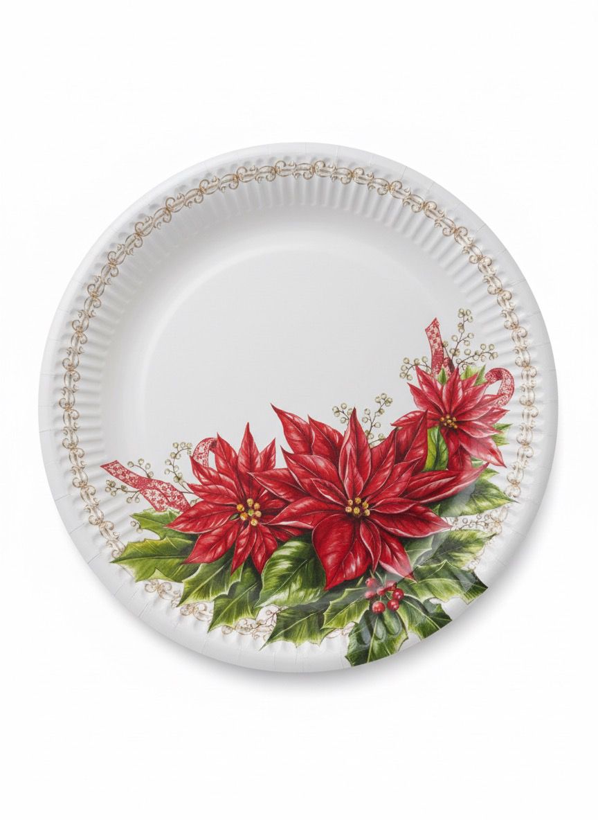 Porta sulla tua tavola l’atmosfera delle feste con questi piatti piani in cartone, decorati con fantasia con stelle di Natale . Resistenti, eleganti e perfetti per pranzi, cene e feste natalizie, aggiungono subito un tocco di calore e stile alla tua mise en place.