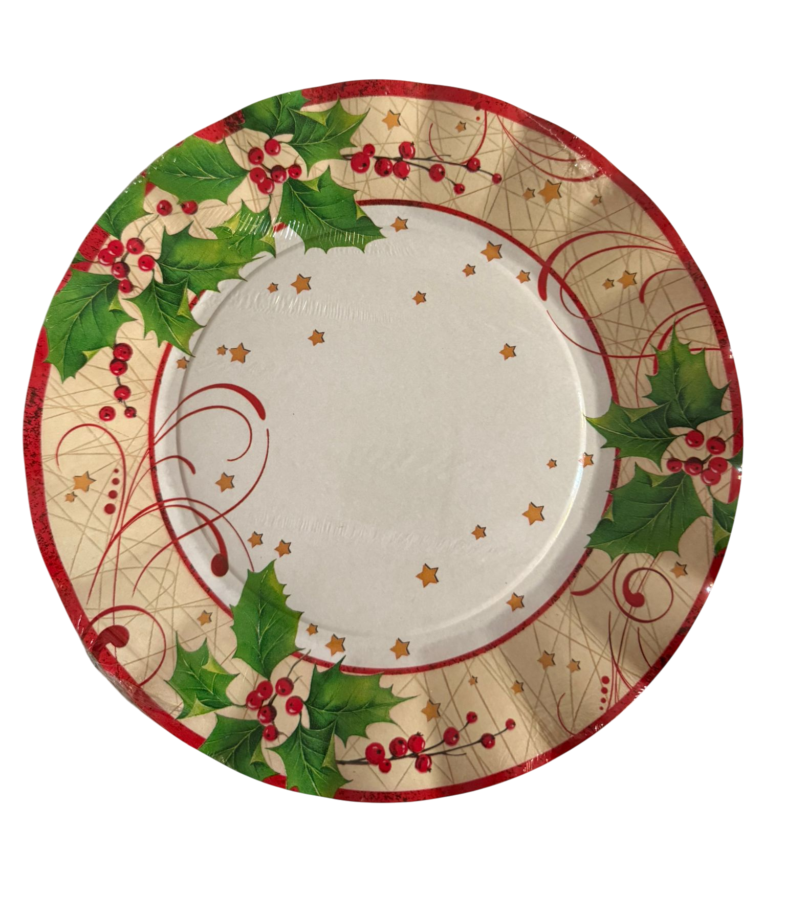 Piatti Piani Decorati Ghirlande e Vischio 8 pz. Ø 24,5 cm.