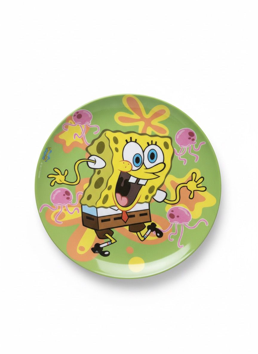 Decorazione ufficiale Nickelodeon con Spongebob che balla tra le meduse: colori brillanti e stampa indelebile che non si graffia e resiste a migliaia di lavaggi in lavastoviglie (ciclo fino a 70°C).